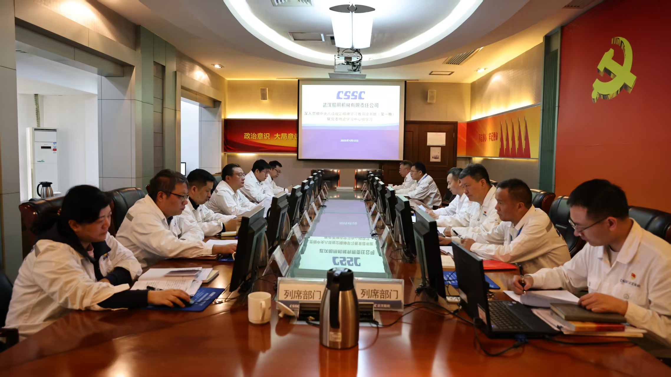 4月12日,中船集團(tuán)武漢船機(jī)黨委召開深入貫徹中央八項(xiàng)規(guī)定精神學(xué)習(xí)教育讀書班(第一期)暨黨委理論學(xué)習(xí)中心組學(xué)習(xí)會(huì)議。公司黨委理論中心組成員參加學(xué)習(xí)研討,公司黨委副書記、總經(jīng)理程立兵主持讀書班并進(jìn)行領(lǐng)學(xué)。
