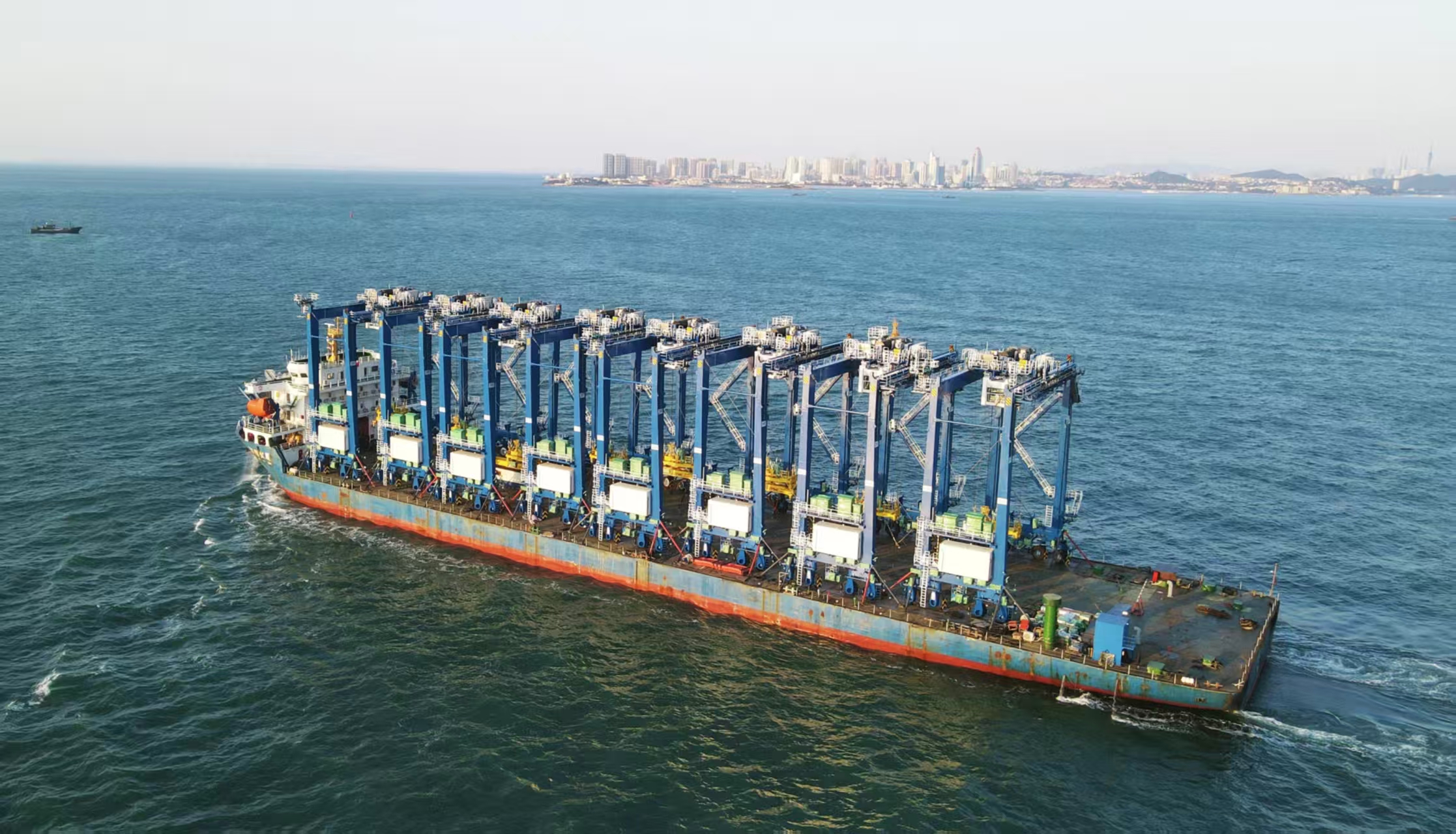 10月21日,中船集團(tuán)武漢船機旗下海西重機為寧波北侖涌和集裝箱碼頭有限公司量身打造的批量自動化輪胎吊從海西重機碼頭順利啟航發(fā)船,標(biāo)志著該項目正式進(jìn)入交付階段。