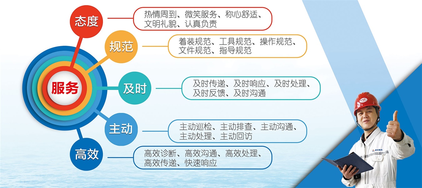 ? 售后服務網(wǎng)點輻射沿海各大港口及相鄰船廠。售后服務工程師長期駐守售后服務網(wǎng)點及周邊地區(qū),只要客戶需求,我們會及時作出響應,第一時間為客戶解決問題。